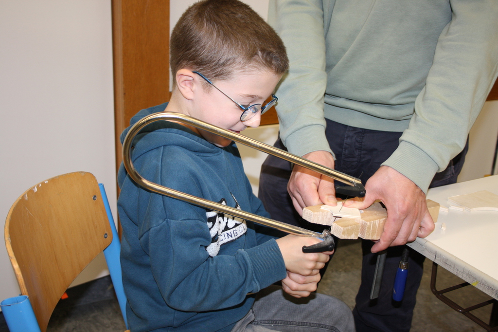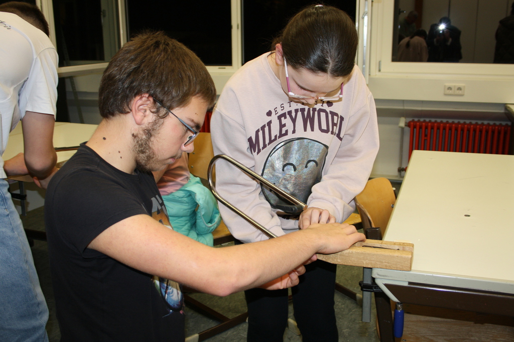 Seit Wochen tüfteln wir gemeinsam, heute ging es nun erstmals auch an die praktische Umsetzung. Im Technikraum entstanden erste Holzrahmen in Wabenform. Wir sind gespannt, wie das fertige Bauwerk aussehen wird.