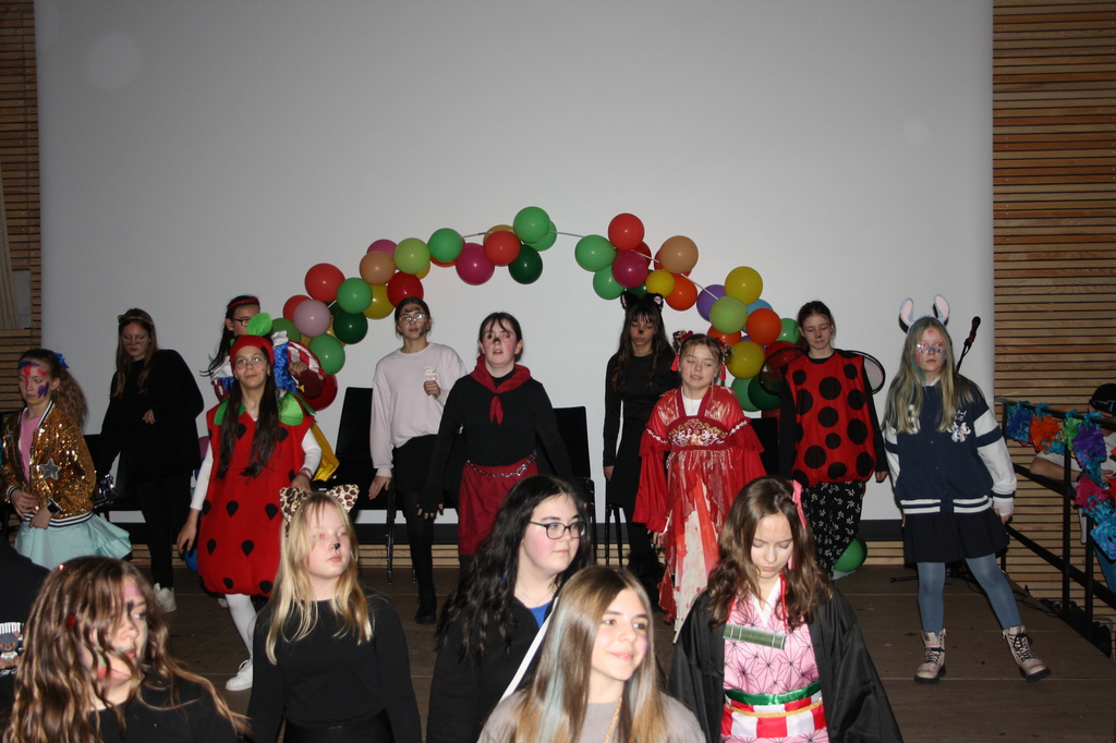 (13.02.2026) Närrisch ging es am letzten Schultag vor den Faschingsferien zu. In der Aula stieg die große gemeinsame SMV-Faschingsparty mit der Realschule. Die Baiersbronner Hexen holten die Schülerinnen und Schüler in den Klassen ab und führten sie in die dekorierte Halle.
