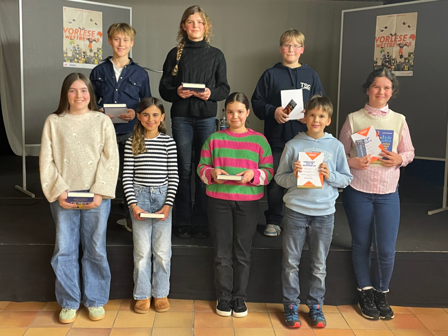 (11.02.2026) Gespannte Aufregung herrschte an unserer JGWRS, denn in der alten Aula fand der diesjährige Kreisentscheid des Vorlesewettbewerbs statt. Eingeladen waren Schülerinnen und Schüler, die bereits erfolgreich den Vorlesewettbewerb an ihren weiterführenden Schulen absolviert und gewonnen hatten.