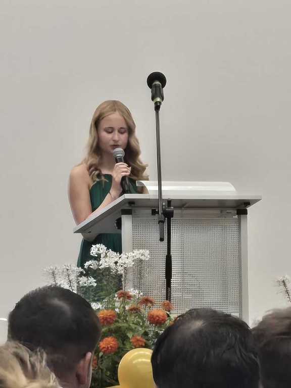 Dass es in der Schule nicht nur darum geht, Faktenwissen zu erlernen, sondern auch Werte wie Mut, Selbstständigkeit und Reflexionsfähigkeit stand im Mittelpunkt der Abschlussworte des Schulleiters Oliver Balle. Trotz aller verständlichen Erleichterung über den erfolgreichen Abschluss aller Prüflinge seien auch künftig Engagement und Einsatz nötig: Dass sich die Entlassschülerinnen und -schüler im positiven Sinne einmischen und die Gesellschaft künftig aktiv mitgestalten, sei sein großer Wunsch.